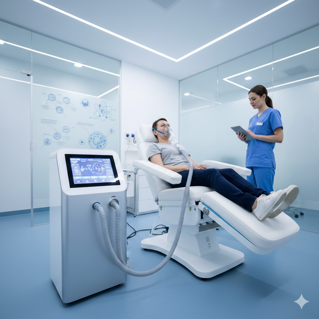 Sessions are conducted under professional supervision using specialized equipment that precisely controls oxygen levels, ensuring safety and effectiveness throughout the treatment.